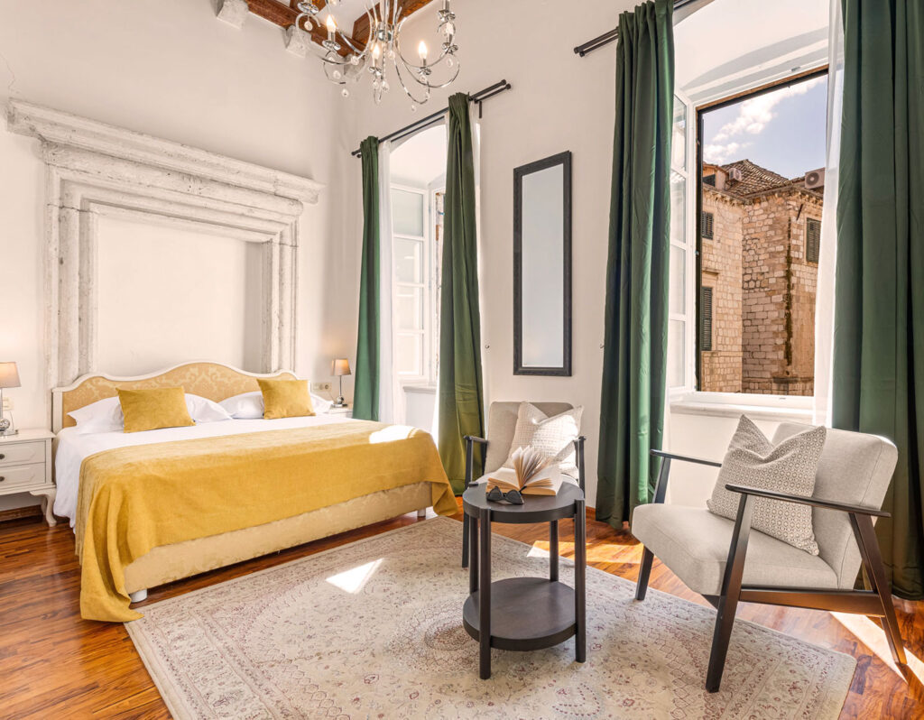 Palmotta Palace is located in the heart of Dubrovnik’s Old Town, housed in two renovated, traditional stone palaces, just 15 meters from the Stradun, Dubrovnik’s vibrant, world-famous main street. With easy access to all historical sites, restaurants, cafés and shops, Palmotta Palace is the ideal base for exploring the Old Town, as well as the nearby area.