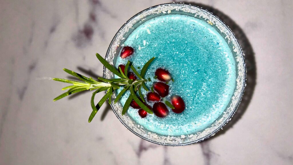 Frozen More is a cocktail that visually resembles frozen sea, with edible glitter that sparkles like ice crystals in the sun. Sweet, refreshing, and irresistible, this cocktail is the perfect choice for those who spend the winter dreaming of summer.