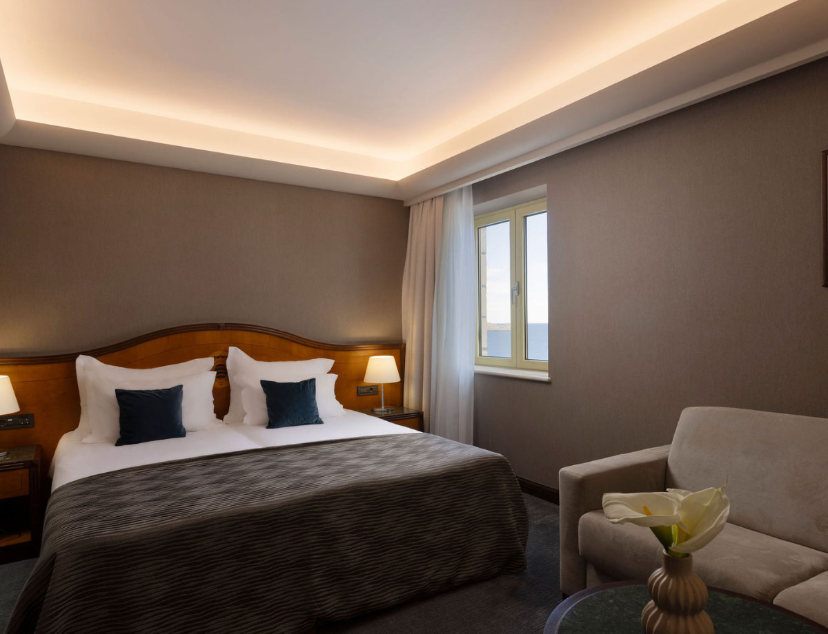 Naša elegantna klasična dvokrevetna soba sadrži jedan queen-size krevet i kupaonicu s kadom. Klasična twin soba sadrži dva odvojena kreveta.
